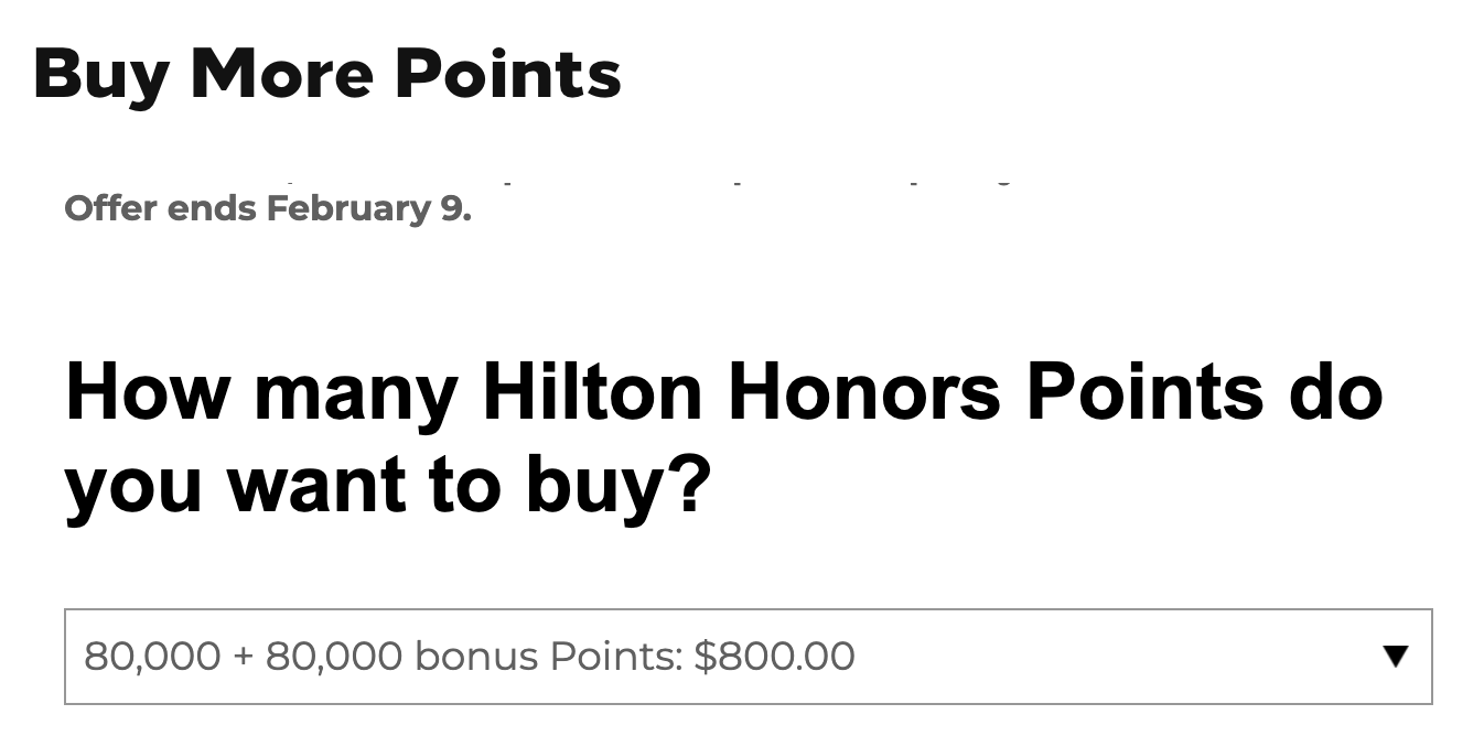 Click HERE to purchase Hilton Honors Points and enjoy a 100% bonus